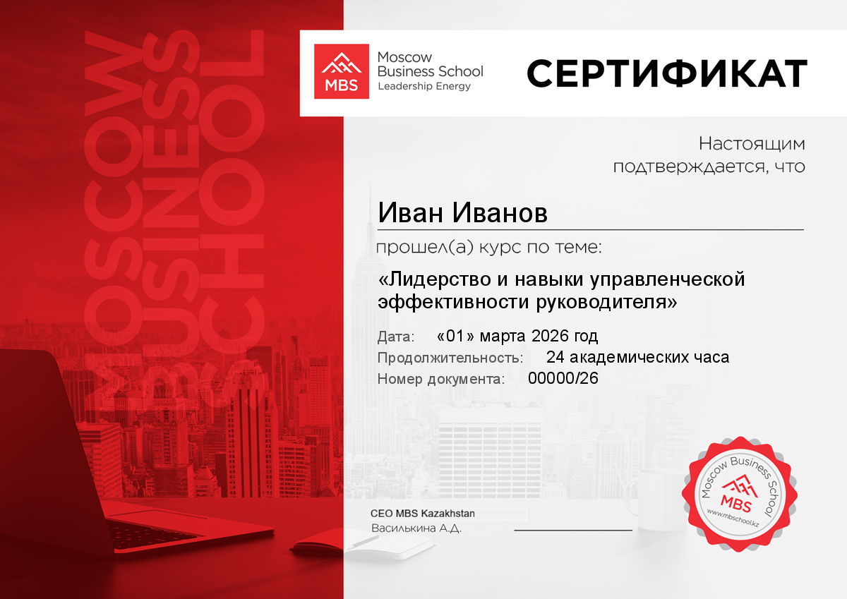 Образец сертификата Moscow Business School
